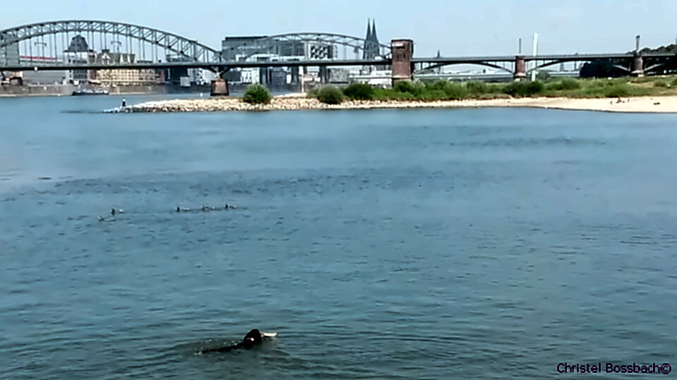 Wenn ich jetzt in Köln an seinem Ufer bin, lasse ich „Vater Rhein“ in Ruhe. Nur ab und zu störe ich seinen Fluss, wenn ein Stück Treibholz in die Wellen platscht – und der Hund begeistert das Apportieren übernimmt. CB