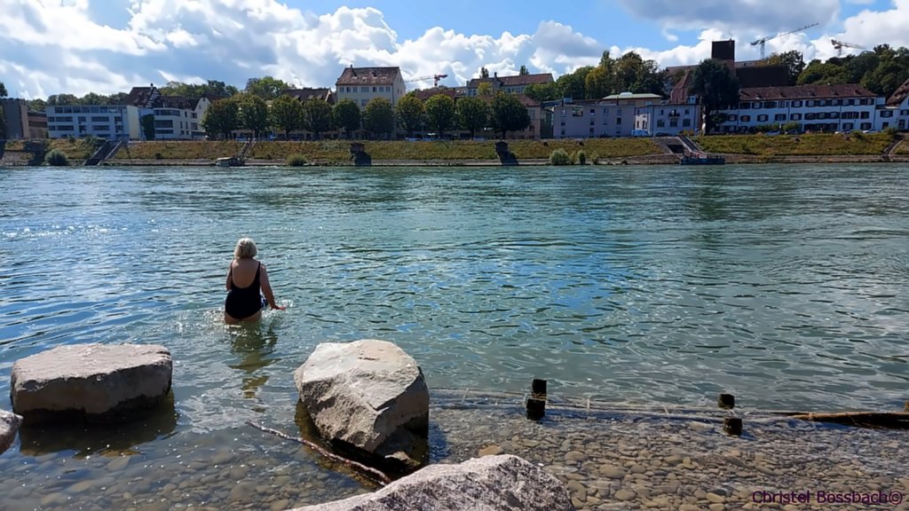 Zweifel, dass ich tatsächlich im Rhein geschwommen bin? Schließlich war ich allein im Zug angereist. Aber einem jungen Paar – beide zu Besuch aus London – hatte ich am Kleinbaseler Ufer einen Zettel mit meiner Mail-Adresse in die Hand gedrückt. „Thanks a lot“. Denn sie haben tatsächlich am nächsten Tag ein paar Fotos vom Rhein mit dem Panorama Basels und mir gepostet. Wie weiter oben zu sehen ist.